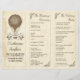 Wedding programs for ceremony, party and on the other side a lot of space for additional information. Beautiful vintage typography and old hot air balloon picture design.