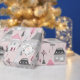 A cute pattern that includes vintage watercolor houses in pink, grey, and white on a pink background graces the upper part of this pretty holiday candle. "Merry Christmas" is in pink script across the bottom with the sentiment "From Our House" and "from" names and date below it. All of the text can be edited. Be sure to change the example "from" names and date to those you want.