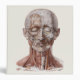 Vintage illustration human health and anatomy drawing featuring the head and face with blood vessels, veins, ligaments, tendons and muscles. A frontal view of the muscular structure of the neck, head and face. Great design for science and biology geeks.
