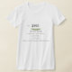 My overall review is that the T-shirt is nice, it fits true to size however the font is significantly smaller than advertised and you can't read it. The printing is unreadable and there is a strain to read it. It does not look like the advertised product. Maybe the shirt color is darker or a larger more visible font should have been used. Photos with and without flash and font is barely legible.