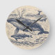 Vintage Humpback Whale Pod Engraving Round Clock