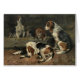Vintage artwork titled "Father of the Pack" by John Emms depicts a group of hunting Beagles resting in the hay in a barn or stable. The English artist, John Emms (1844-1912) was an avid hunter and became famous for his paintings of sporting scenes, horses and dogs, particularly Foxhounds and Terriers. He married a woman from Lyndhurst in 1880, and after a brief residence in London, they returned to Lyndhurst where they established a home and studio called The Firs. Emms lived there for the remainder of his life. He was famous not only for his artwork, but also for his big personality, flamboyant style of dressing, and often careless spending of money. This card is blank inside for your own message.