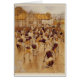 Vintage artwork by Cecil Aldin featuring a dozen or more hunting hounds behind a fenced enclosure watching a man walk from the stables with a horse. The dogs are barking and baying and look excited at the possibility that they may be let out to run freely and go on a hunting trip. The British artist and illustrator, Cecil Aldin (1870-1935), was best known for his paintings and sketches of animals, sports and rural life. This card is blank inside for your own message.