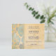 This save the date wedding design delicately balances simplicity with complexity, a contemporary design inspired by old-fashioned floral damask. A striking and exotic damask border, reminiscent of lace, curls and sweeps in dappled, shimmering shades of ice and palest blue, up to a diamond-studded edge. Beyond this, against a softly textured, flecked and speckled warm cream background, the wedding invitation wording will make a bold statement, alternating between timeless all caps and classy touches of script.