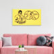 Vintage illustration of a man using magnifying glasses for precision DIY or hobbies and soccer players on the right of the character. Customizable humorous retirement canvas print. You can easily change background color and size by clicking the customize button. Don't forget the whole collection of canvas with vintage illustration.