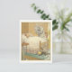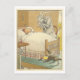 This postcard features a vintage/retro children's book illustration showing a sick animal being tended by a goat and a crow.
