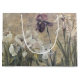 Purple and white iris flower with grungy textured overlay.