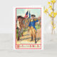 Vintage art of George Washington taking command of the army. Three Cheers For The Red, White & Blue! Card inside reads: Happy Independence Day