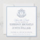 This whimsical vintage-inspired save the date announcement card is the perfect way to share the excitement of your upcoming celebration. Featuring a unique and fun crest design on the front, the crest is flanked by two charming Frenchie dogs, adding a playful and personal touch. The square shape of the card gives it a modern twist while maintaining the vintage aesthetic. The blue color palette complements the design beautifully, evoking feelings of elegance and joy. Bold, modern typography provides a clean and contemporary contrast to the intricate details of the crest, making the card both stylish and memorable.