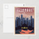 Vintage retro travel Istanbul Turkey Skyline postcard showing the city silhouette of the turkish travel destination with a crescent (half moon). Great travel gift idea and souvenir for every tourist.