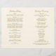 Delicate antique flourishes in soft gold tones adorn this timeless ceremony program set against a warm ivory background. The front cover features an elegant scrollwork border framing your names and wedding date, with a coordinating vintage-inspired backing. Inside pages are fully customizable for your bridal party, ceremony details, and a personal thank you message. Programs are printed on text-weight paper and arrive flat, requiring a simple center fold.