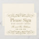 Invite guests to leave their mark with this vintage ivory scrollwork "Please Sign Our Guest Book" sign. Ornate scroll filigree borders frame the elegant typography on a warm ivory background, with space for the couple's name and wedding date. Coordinates with the full scrollwork stationery suite in the ivory colorway. All text is fully customizable.