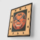 Square acrylic wall clock with a vintage Halloween jack-o-lantern.