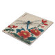 Vintage Japanese Dragonfly Art Red Flowers Ceramic Tile