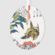 Vintage Japanese drawing, Peonies and Sparrow Ornament
