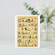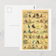 This postcard is a reproduction of a vintage chart showing Japanese-English translations with illustrations.