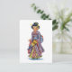 Vintage Japanese girl in traditional costume wearing a Kimono and holding a parasol.