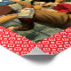 Vintage Japanese travel poster features children aboard the Toyo Kisen Kaisha (Oriental Steamship Company) oceanliner. Red Japanese print background