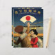 Vintage Japanese travel poster features children aboard the Toyo Kisen Kaisha (Oriental Steamship Company) oceanliner. Red Japanese print background