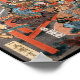 This poster is a printed reproduction of a Japanese woodblock print triptych, Oeyama Shutendoji. Created in 1858 by ukiyo-e master Utagawa Yoshitsuya, this scene features the giant head of the oni king Shutendōji of Oeyama fighting with famous samurai Minamoto no Yorimitsu and his allies.