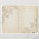 Vintage journal pages with ruled pages and rounded corners tied together with string at the binding. This design has wild roses cascading over the corners and a tiny bee. Design is repeated on the back.