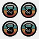Vintage kettlebell custom monogram name initial with multiple colored striped circle grey, turquoise, orange and red on a black blackground. Perfect for anyone who is lifting, fitness, training, bodybuilding and going to the gym.