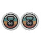 Vintage kettlebell custom monogram name initial with multiple colored striped circle grey, turquoise, orange and red on a black blackground. Perfect for anyone who is lifting, fitness, training, bodybuilding and going to the gym.