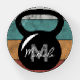 Vintage kettlebell custom monogram name initial with multiple colored striped circle grey, turquoise, orange and red on a black blackground. Perfect for anyone who is lifting, fitness, training, bodybuilding and going to the gym.