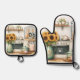 Vintage Kitchen Print Oven Mitt & Pot Holder Set