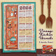 Vintage Kitchen Utensils Calendar Towel 2026 will keep you in style all year long. Retro Kitchen items including a fondue pot, pyrex bowl and coffee carafe with all the vintage style kitchen icons decorating the border. Display in your kitchen on a dowel, or just hang over the handle of the oven door.