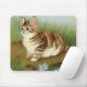 Mouse Pad featuring a vintage kitten illustration. A cute tabby kitten hiding in a flower garden. A perfect gift for cat lovers and Victorian art collectors.