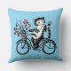 Vintage Kitty Riding A Bicycle Throw Pillow