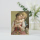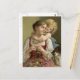 Sweet, vintage picture of a mother knitting while her child hugs her, is featured on this postcard. A lovely way to keep in touch with your friends or family members that love needle arts!