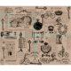 Vintage Kraft Paris Theme Script Fabric