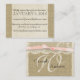 Vintage lace and burlap look information insert cards. To Match invitations, customize text as needed. Add the bride and groom's names with a monogram and wedding date to the back. Not real burlap.