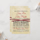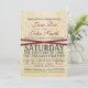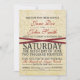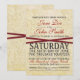 Vintage lace layered on parchment featuring red ribbon. Casual wedding invitation wording that can be customized in both font style and color.