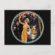 Vintage Lady Cherry Blossom Tree Hat Box Postcard