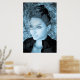 3D digital render of a beautiful vintage lady, blue colroation, old photo effect