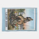Quaint and colorful antique lager advert lithograph ca 1870's depicting victorian actor Joseph Jefferson as Rip Van Winkle seated on keg being pulled by goats with satyrs on either side.