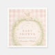 A soft vintage baby shower design inspired by classic storybook illustrations. Gentle wildflowers form a delicate wreath around a sweet lamb, finished with a blush ribbon bow and a warm gingham background that adds a cozy nursery feel. The airy watercolor style and muted pastel palette create an elegant yet whimsical aesthetic perfect for celebrating a new arrival. Designed for parents who love timeless, cottagecore-inspired baby shower themes with delicate botanical details.