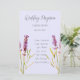 This wedding program sheet template features an elegant light purple background adorned with delicate vintage lavender flowers, creating a charming and captivating design. Perfect for a Provencal-style or rustic wedding celebration.