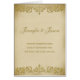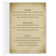 A vintage, distressed paper look background in shades of warm and creamy beige forms the basis of this stunning Wedding Reception Menu card. Decorative leaf scrollwork in a damask style, shaded in golden neutral tones complete this fully customizable design. Other sizes/formats and matching items are available in store.