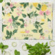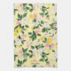 A vintage-style pattern kitchen towel featuring bright lemons with lush green leaves, accented by delicate white and pink flowers, all set against a cheerful yellow background. This nostalgic botanical design captures the essence of sunny days, evoking a timeless summer feel perfect for seasonal charm and nature-inspired aesthetics.