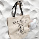 A unique set of custom tote bags tailored to your beach style or destination wedding. It features a welcome text followed by the name of the location or the person receiving the bag. Under this is a vintage-style Lighthouse in black. All elements of the design are customizable by using the customization function. Enjoy being creative and making it your own!
