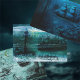Vintage ships, boats and lighthouses on ocean blue backgrounds.