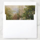 Romantic wedding envelope liner featuring soft blooming lilac garden inspired by the fine art painting Orgován by Ladislav Mednyánszky. This natural floral landscape adds timeless elegance and an airy garden feel to your wedding invitations. Perfect for romantic, vintage and fine art inspired weddings, botanical themes and outdoor celebration stationery.