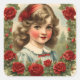 This square sticker design features a charming little girl in a frame of red roses . Great for Valentine - day , for her retirement party and bridal shower.