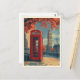 Discover the charm of vintage London with this stunning travel postcard. Featuring a classic red telephone booth in the foreground and the iconic Big Ben in the background, this pastel-colored illustration captures the essence of a sunny day in the city.