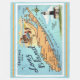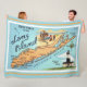 A colorfully illustrated, vintage map of Long Island New York. This is an old postcard repurposed on a comfy throw blanket.