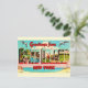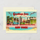 Colorfully illustrated, vintage postcard greeting from Long Island, New York. It's an old postcard repurposed now on a new postcard to use for any occasion.